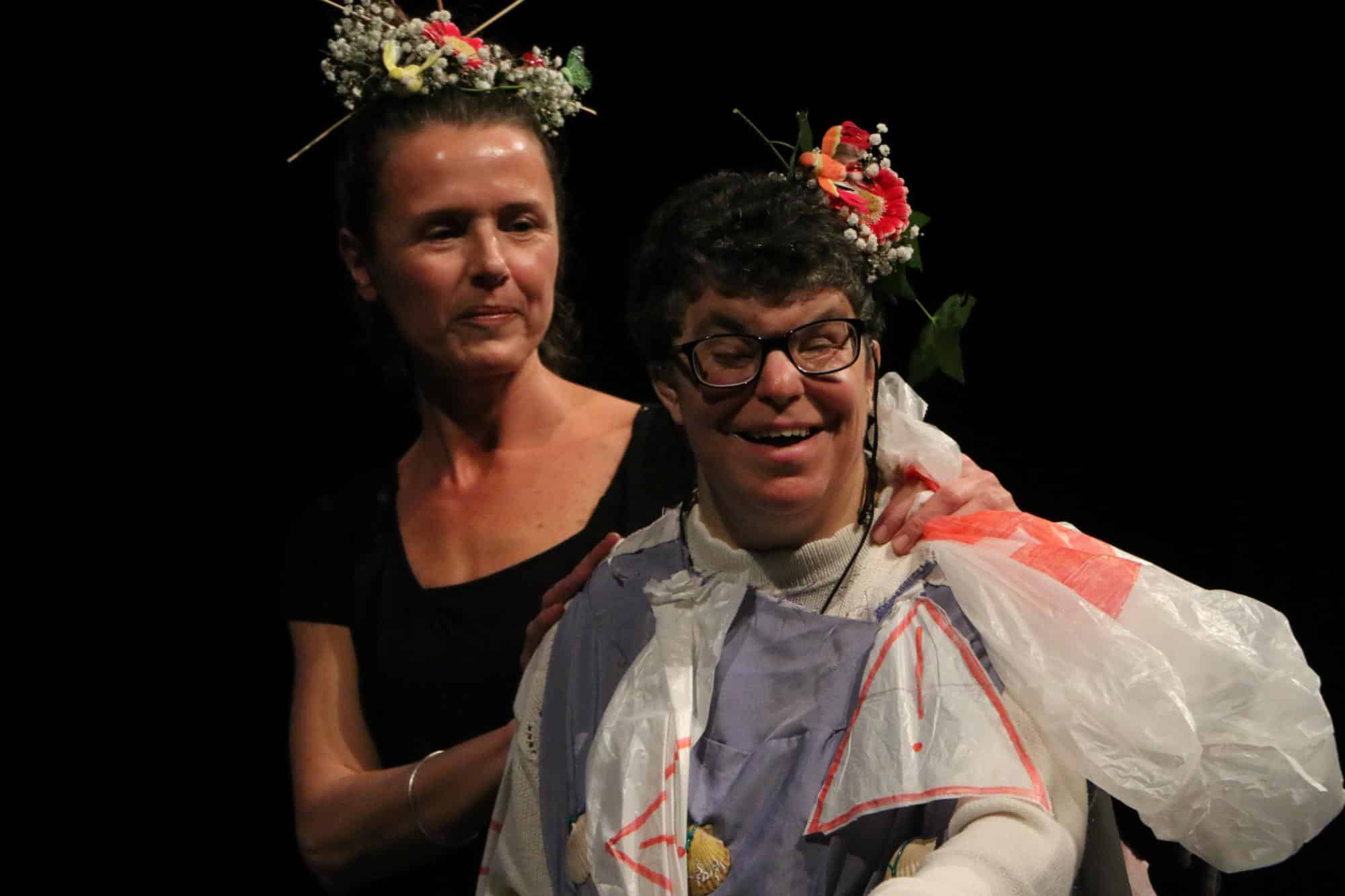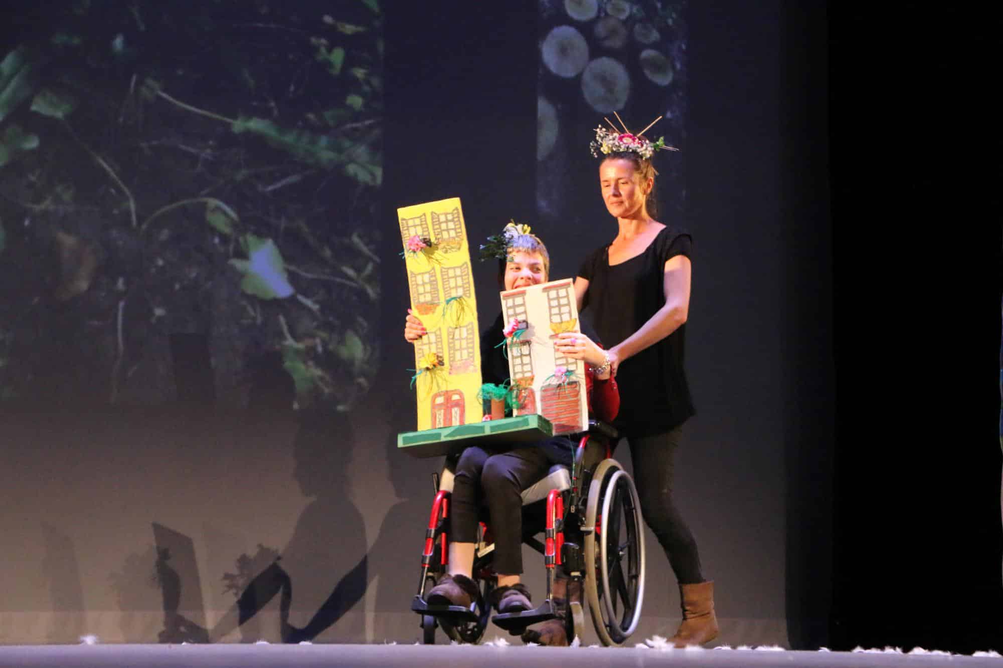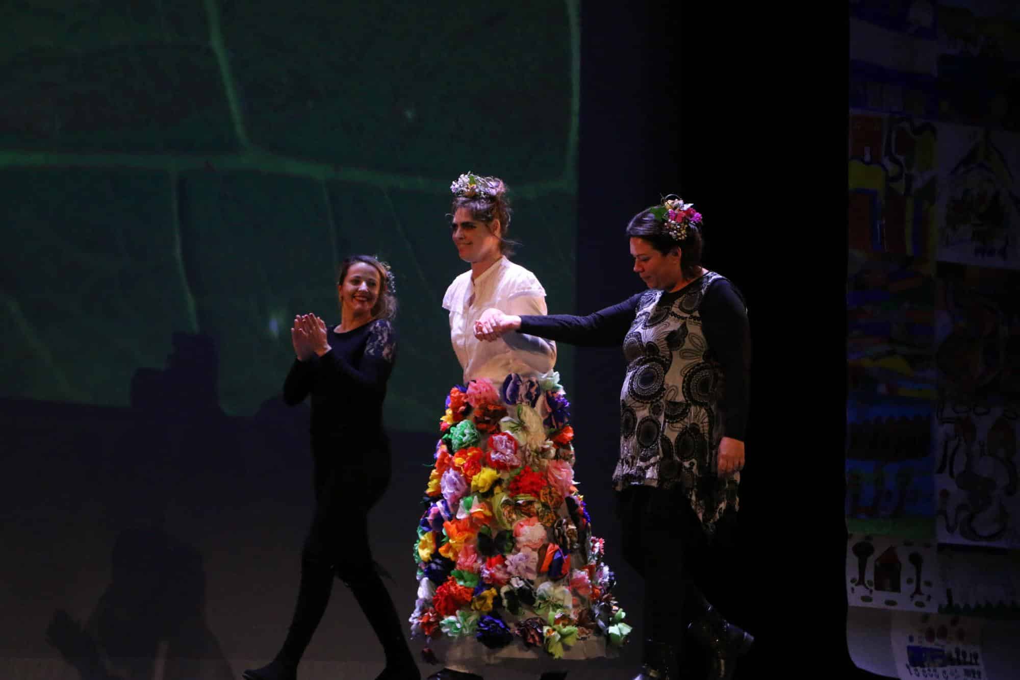 La soirée s’est poursuivie par un défilé “Bio Fashion” présenté par le FAM et l’accueil de jour de Bègles. Cette représentation est le prolongement du projet “Land Art” Prendre soin, initié l’an dernier en partenariat avec l’Association Monts et Merveilles, dans le cadre de l’appel à projet L’un est l’autre proposé par le Conseil Départemental. Une prestation à couper le souffle qui a entraîné la salle dans un tonnerre d’applaudissements.