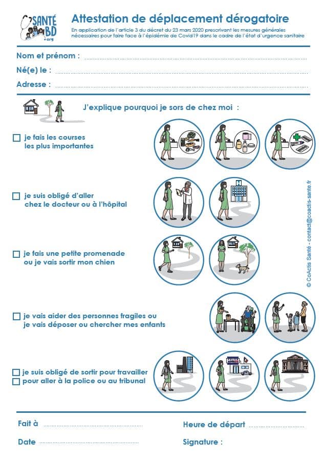 Quand vous sortez, vous devez avoir cette attestation avec vous, ainsi que votre carte d’identité.