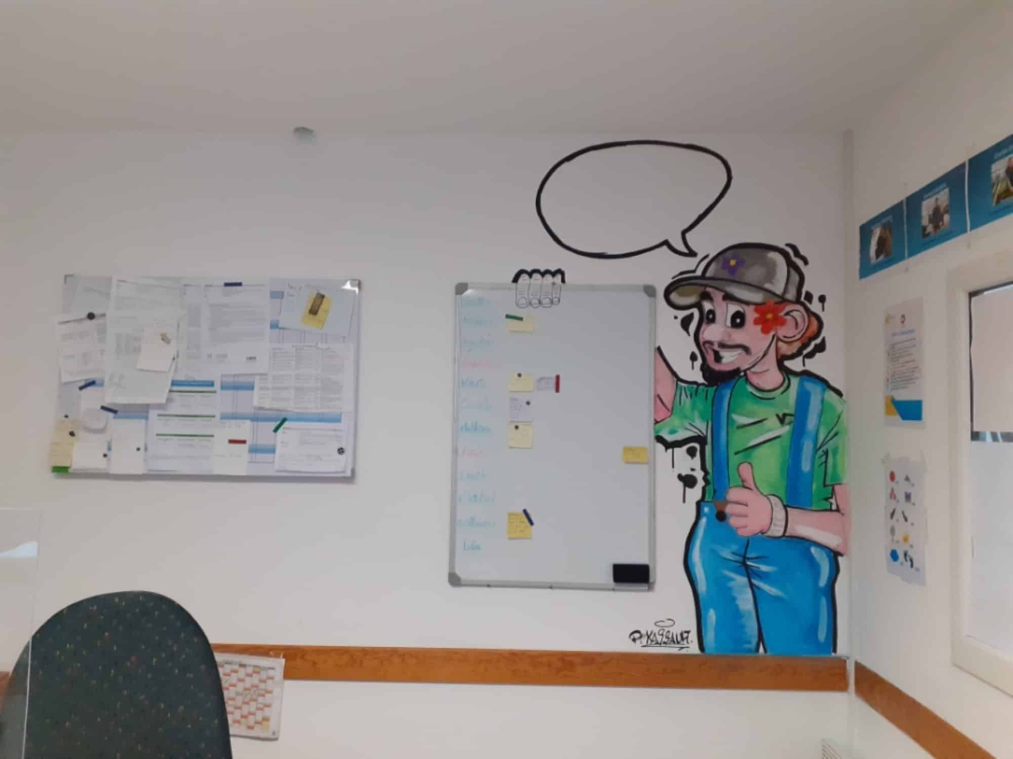 Nous lui avons confié la mission d’améliorer la visibilité du panneau d’affichage dans le bureau de l’atelier et de l’égayer un peu.