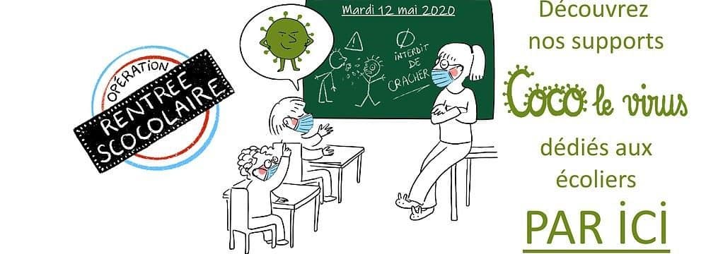 L’enseignement des gestes barrières et la transmission de consignes aux enfants avant leur rentrée scolaire va jouer un rôle majeur dans la prévention d’une seconde vague de contaminations au coronavirus Covid-19 de la population française. Pour aider à préparer les enfants à leur retour à l’école et pour essayer de les rassurer vis à vis du … Lire la suite de Coco le virus : Spécial rentrée scolaire