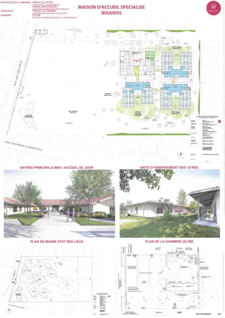 Un immense merci aux résidents et à leurs familles, ainsi qu’aux équipes et à la direction de la MAS, pour leur patience et leur courage face aux intempéries de l’an dernier qui ont accéléré l’urgence de cette reconstruction. Merci également aux agences d’architectes Villattes et Berguedieu-Brochet, pour leur travail de conception et leur accompagnement en lien étroit avec nos équipes. Notre gratitude va aussi à l’ARS Nouvelle-Aquitaine et à la CNSA, dont le soutien financier rend ce projet possible, ainsi qu’aux élus, en particulier M. Lafon, maire de Biganos, et Mme Panonacle, députée de la 8e circonscription, pour leur engagement à nos côtés dans l’amélioration des conditions de vie des personnes que nous accompagnons.