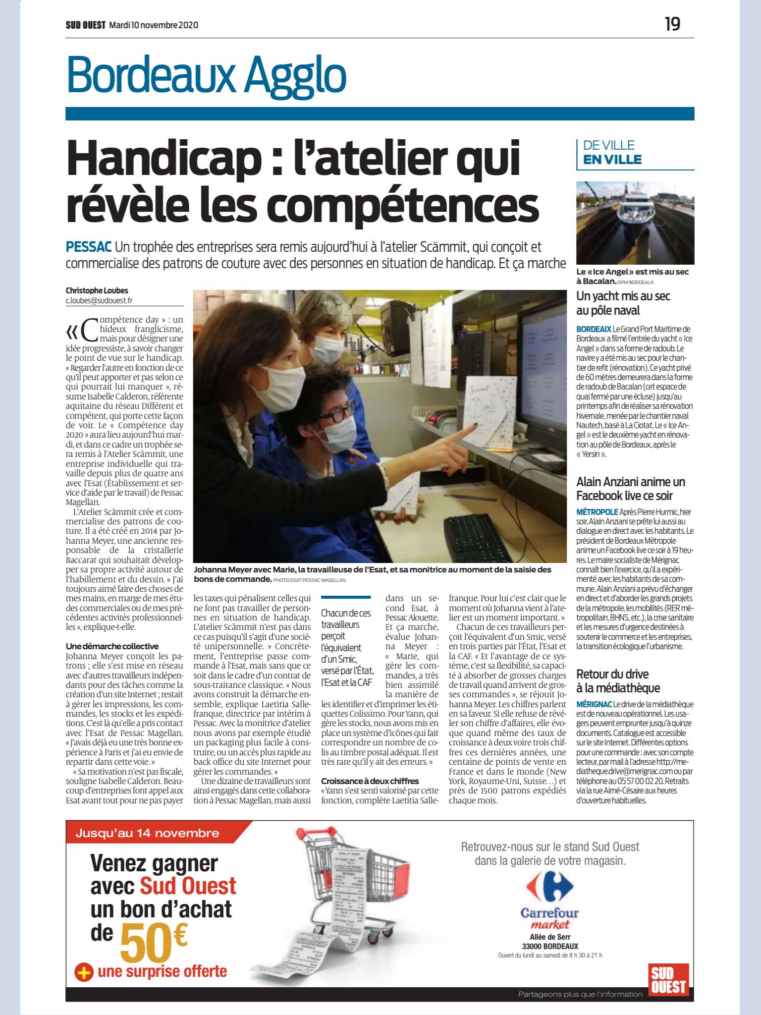 L’Atelier Scämmit est une petite entreprise de moins de 10 salariés, spécialisée dans la fabrication de patrons de couture qui s’est inscrit depuis sa création dans une relation de co-construction et de confiance avec l’ESAT Pessac Magellan et plus particulièrement avec les travailleurs de l’atelier Conditionnement.