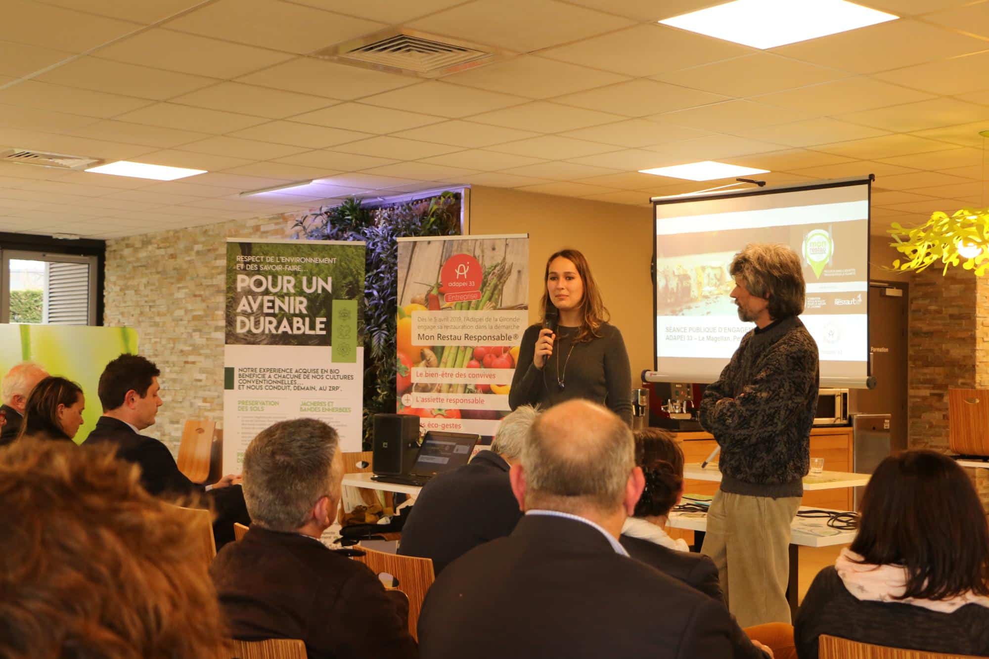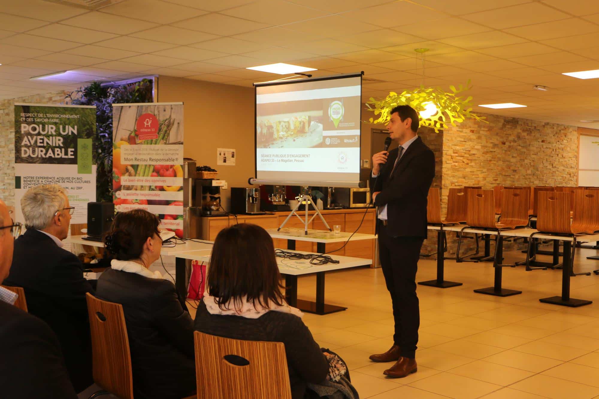La séance publique d’engagement qui a eu lieu vendredi dernier devant ses parties prenantes – Clients, personnes accueillies, salariés, producteurs, partenaires, élus… – marque une première étape pour le restaurant, avant l’attribution de la Garantie Mon Restau Responsable dans deux ans !