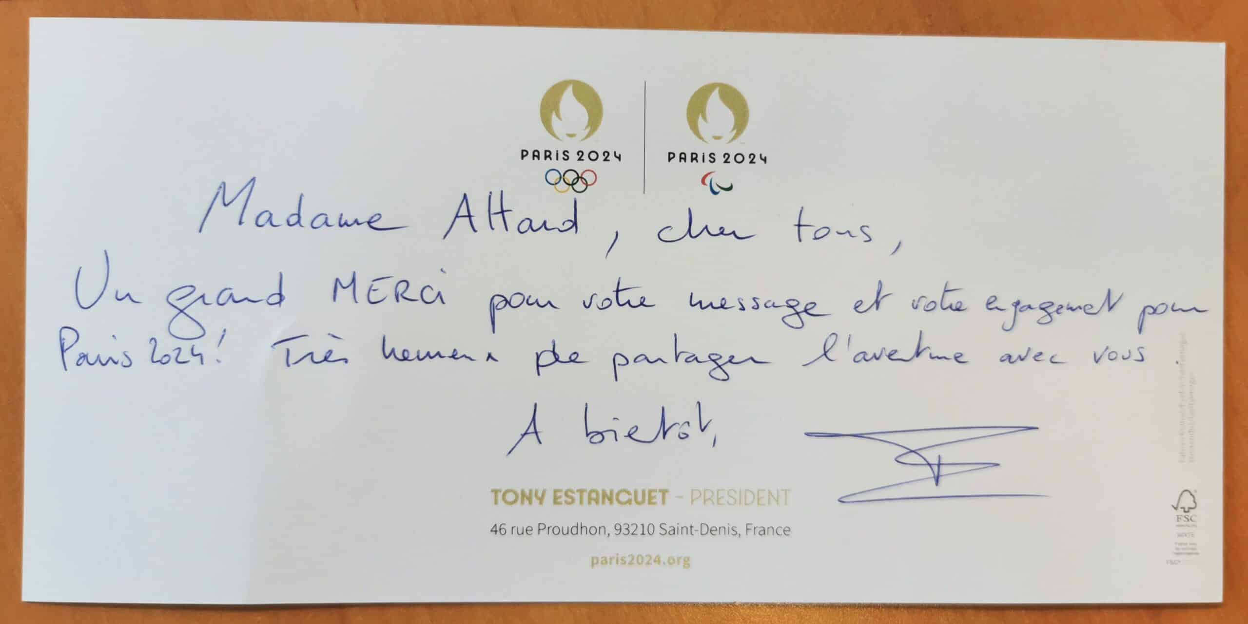 Elle a adressé un courrier à ces personnalités, afin de mettre en lumière leur travail consciencieux et leurs valeurs inclusives partagées avec cette entreprise. Ils ont eu un agréable retour du PDG de la Monnaie de Paris et de Tony Estanguet !