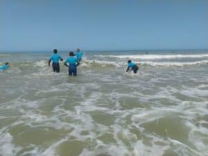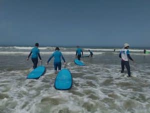 En partenariat avec l’école de surf Asponat (Art Sport Nature) au Porge, les deux éducateurs sportifs de l’IME accompagnent ces jeunes dans un projet de découverte de la nature et à l’initiation aux activités aquatiques.
