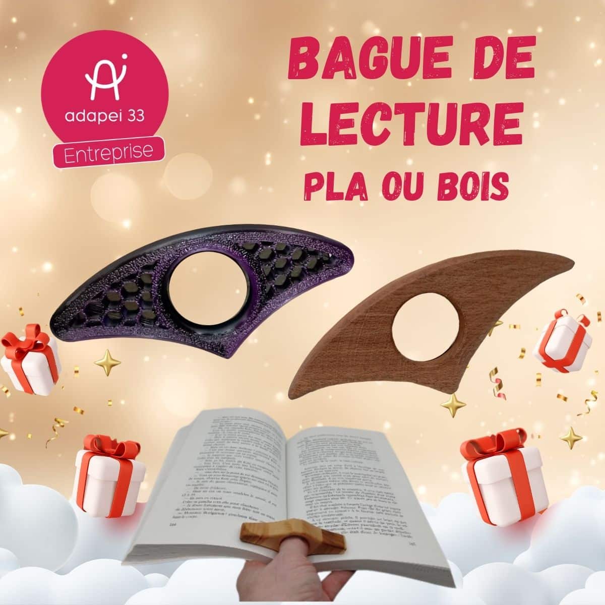 Bague de lecture en PLA (plastique biosourcé à base d’amidon de Maïs) ou en bois.
