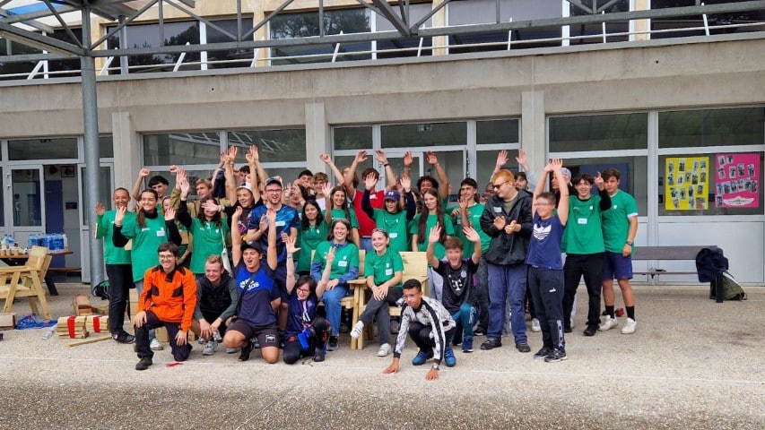 Le troisième groupe d’étudiant de l’ESSCA a pris le relais pour le troisième jour de construction, toujours sous le signe de l’entraide avec les jeunes des différents parcours de l’IME de Pessac Alouette.