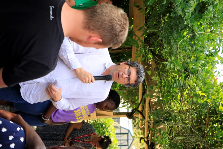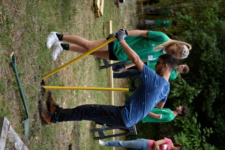 Un premier groupe de 40 jeunes motivés de l’ESSCA ont commencé à aménager, sous le regard bienveillant (mais toujours pointilleux) de l’équipe de l’organisme de teambuilding Splash Projects, la cour de l’IME.